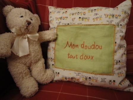 Coussin range doudou en coton.